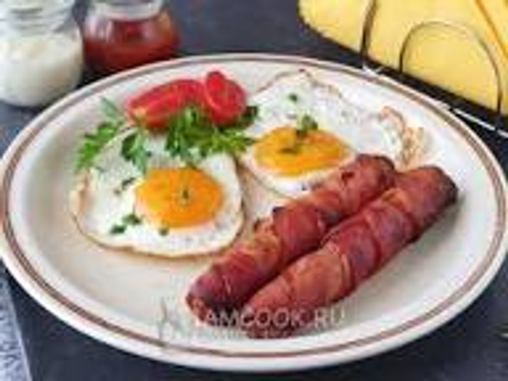 Яичница с сосискам 3 яицо 2 сосиска